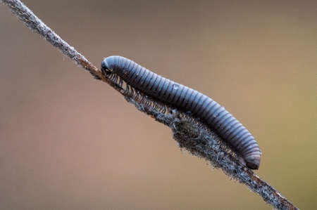 The Seychelles giant millipede on a tree branch (Sechelleptus seychellarum a member of Flatplate Millipedes Family Spirostreptidae)