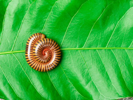 Hi-res photo of millipedes is wrapping themselves on the leaves to protect themselves from danger