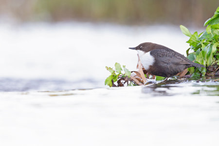 White-throated dipper in its natural habitat in Denmark