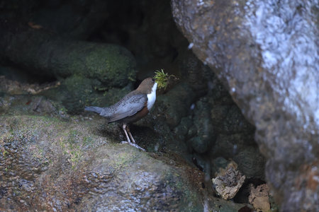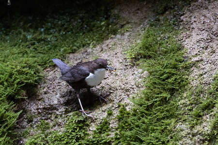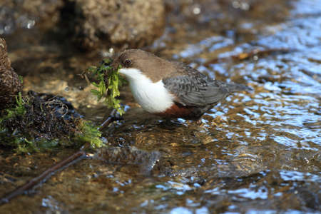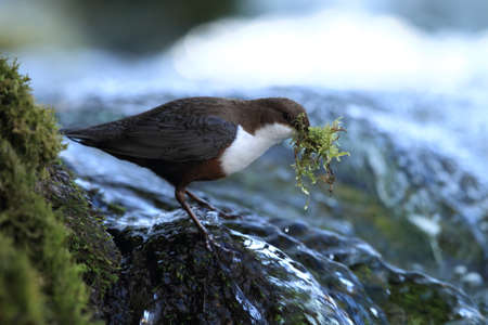 Dipper (cinclus cinclus) gathering food for its chicks.