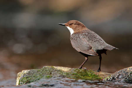 A Brown Dipper perching on a stone.