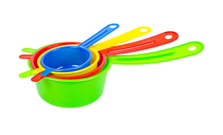 measuring spoons plastic on white background
