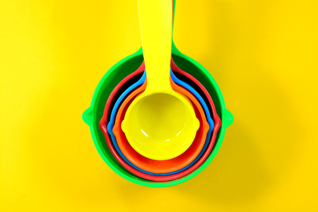 colorful measuring spoon on yellow background