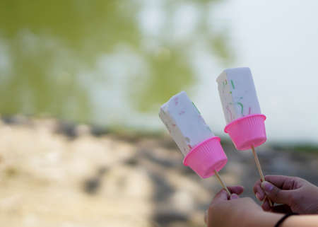 Close up view of Colourful Ice cream sticks making