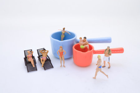 figurines depict a relaxing beach scene, featuring seated figure