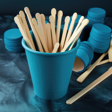 Wooden sticks for stirring tea or coffee. AI generative.