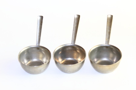 Steel measuring spoons on white background