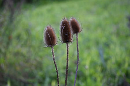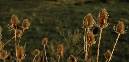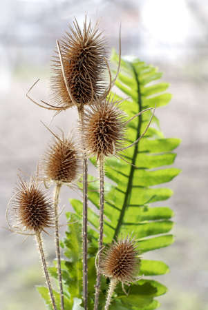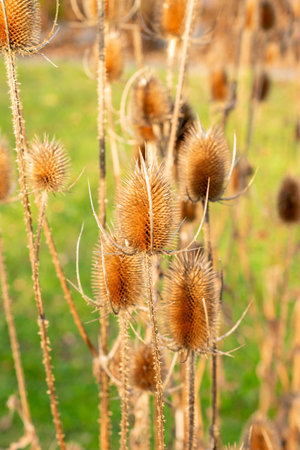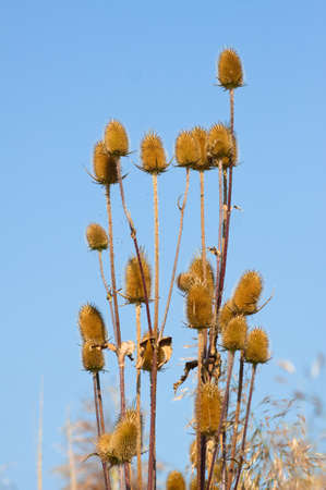 Dried flower heads of the wild teasel