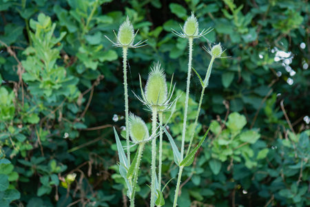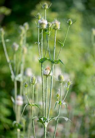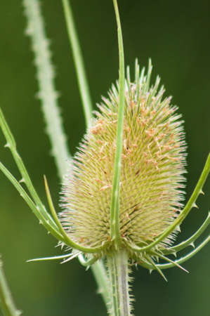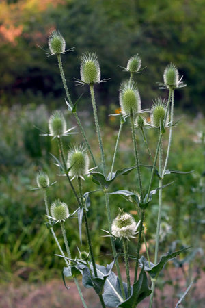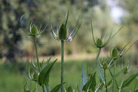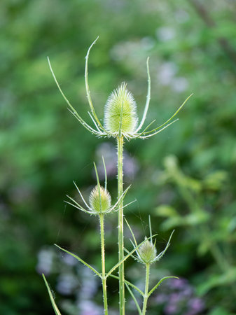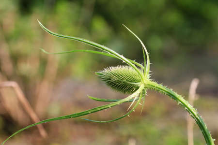 Dipsacus, Green Flowering Plant: Teasel with Prickly Stem.