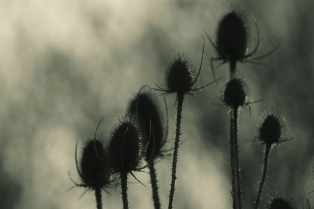 teasel plant early morning sunlight soft background