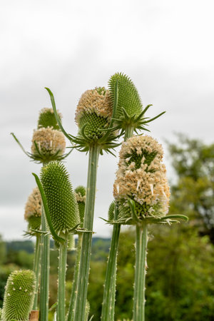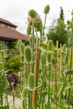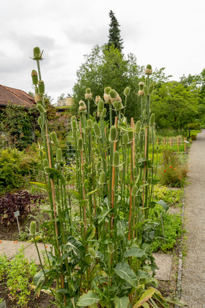Saint Gallen, Switzerland, June 23, 2024 Dipsacus Sativus plant at the botanical garden