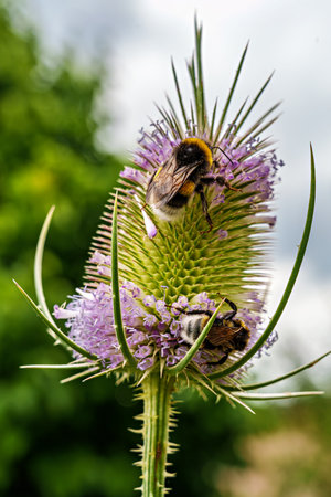 Dipsacus fullonum, wild thistle flower close up