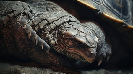 Close up portrait of a tortoise with textured skin and expressive eyes, showcasing its unique features in a neutral background, ideal for animal and nature themes