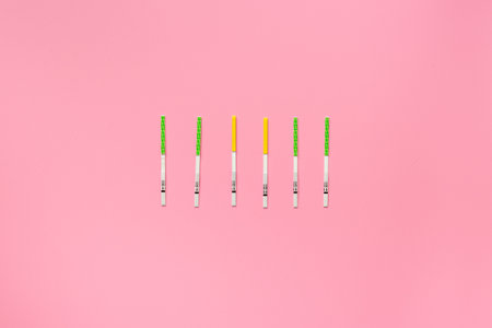Pregnancy and ovulation tests top view. Female fertility and planning pregnancy concept.
