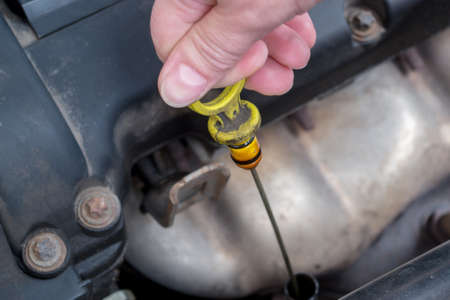 Maintaining Car Oil Check. Engine Oil Check. Driver checks the oil of his car.