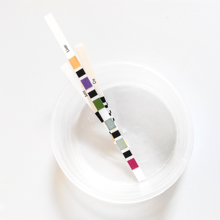 On-the-Spot test strips for laboratory diagnostic in the plastic cup on a white background