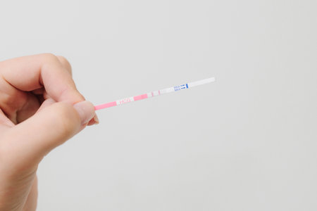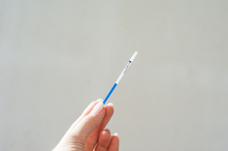 Pregnancy test strip. Pregnant test. Doing a pregnancy test