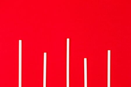 Plastic cocktail straws arranged in columns of statistics graph on a red background.