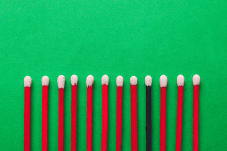 Matches on color background. Concept of uniqueness