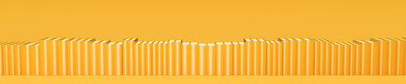 Row of yellow hardcover books over yellow background, reading, education or study concept, 3D illustration