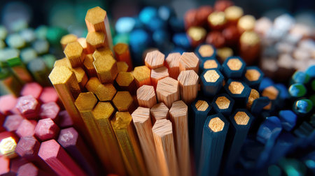 A stunning array of colorful wooden pencils with different shapes and sizes, showcasing vibrant hues and artistic arrangement for creative inspiration.