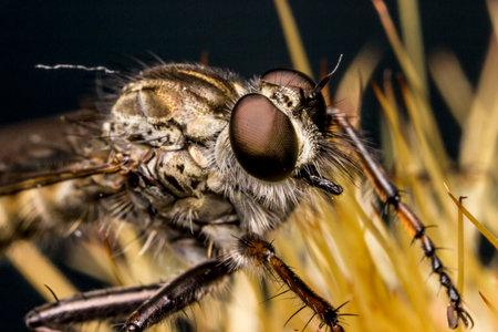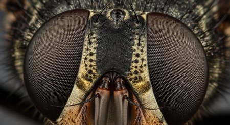 Macrophotography with the head of a Common flesh fly (Sarcophaga carnaria).