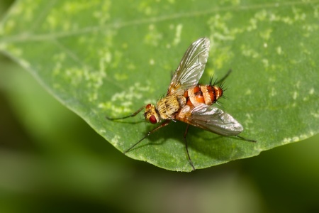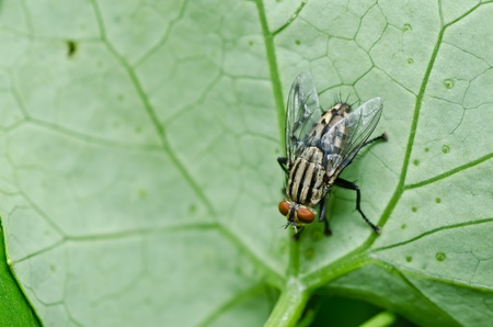 Housefly close up Macro shot. The housefly is a fly of the suborder Cyclorrhapha, and has spread all over the world as a commensal of humans. It is the most common fly species found in houses
