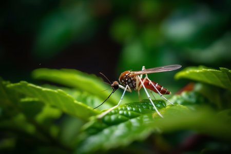 fly resting on a leaf, unaware of the hidden frog nearby, created with generative ai