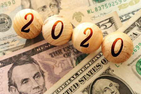 Business concept of 2020 top view with money bills. New year management, and financial plan