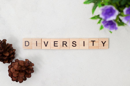Top view of Diversity word on wooden cube letter block on white background. Business concept