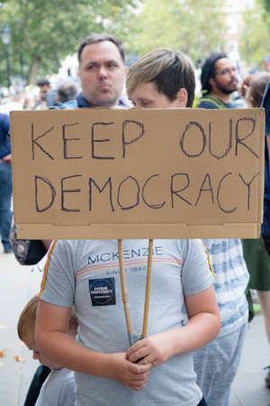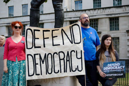 London, United Kingdom, August 31st 2019:- Protesters in Whitehall, Central London protesting Prime Minister Boris Johnson's plan to suspend Parliament for five weeks
