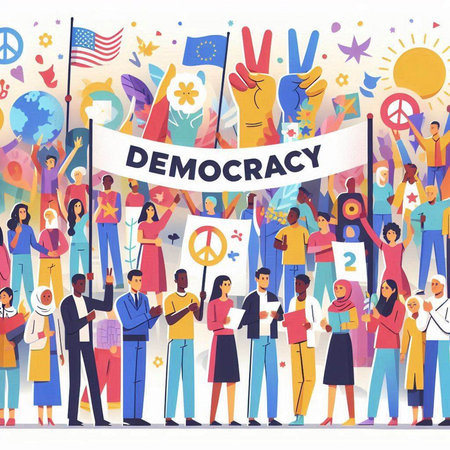 Concept of the International Day of Democracy. protect democracy. Expressing a social position.
