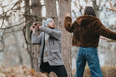 Professional director actively giving loud commands and pointing on a film set, showing intense emotions and leadership in production