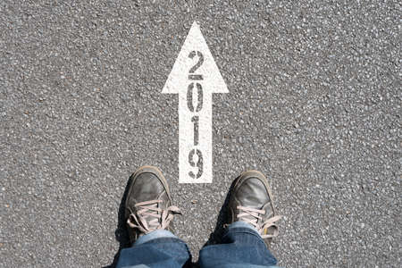 A man and an arrow in the direction of 2019