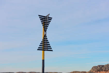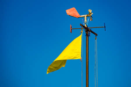 Windsock during a strong wind. Windsock shows wind direction and strength. Made of fabric in the form of a cone. It is installed at the airports of small aircraft or on the basis of sailing ships.