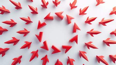 This dynamic image features colorful 3D arrows pointing in various directions against a vibrant red background, ideal for creative designs and concepts.