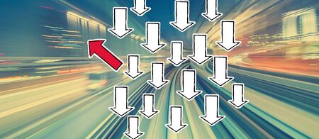 Arrow going in a opposite direction with abstract high speed technology POV motion blur