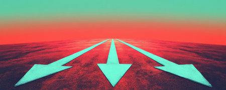 Abstract road with three arrows pointing forward, vibrant colors. Futuristic direction and progress concept