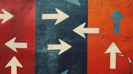 Green and red arrows textured surface symbolize upward and downward movement, representing growth and decline. contrasting colors evoke strong emotions related to decision making and market trends