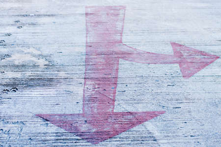 Arrows on a concrete wall. Red arrow, right direction. Leadership concept. Team. Business Finance