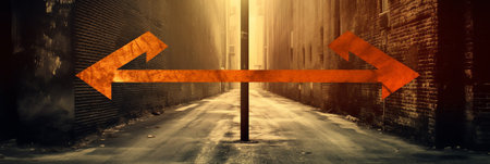 A yellow road sign with an arrow pointing left and right stands on the side of a long, flat road in front of a clear blue sky, symbolizing diverging paths or a choice between two different directions, with no text. --chaos 30 --ar 16:9 --v 6.1 Job ID: 6c055c50-0bbe-4c9b-bc3d-4debb919ab9a
