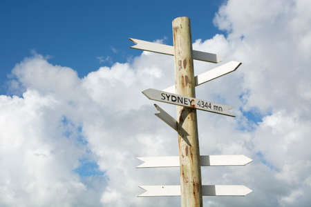 Cape Reinga, Northland, New Zealand. Yellow sign at the most northern of the country.