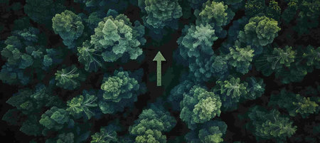 Green grass arrows symbolize sustainable development and positive environmental growth for progress.