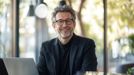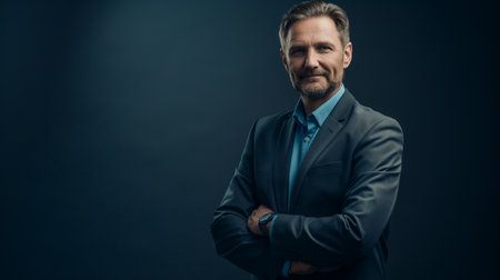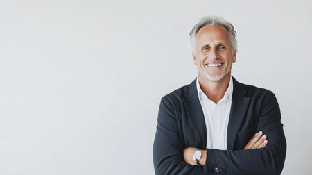 Middle-aged business executive smiling with satisfaction, embodying leadership and determination