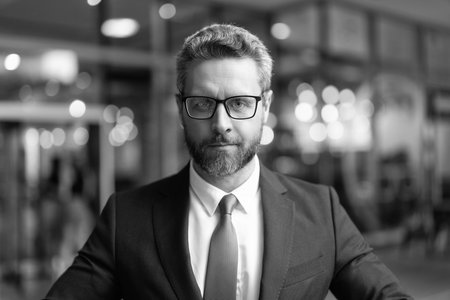 Portrait of confident mature businessman in eyeglasses looking at camera