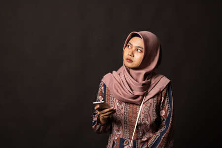 Fashion portrait of young beautiful asian muslim woman with wearing hijab on black background