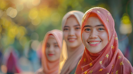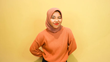 Portrait of a happy young asian muslim woman wearing hijab