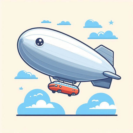 Airship in the sky. Colorful vector illustration in cartoon style.