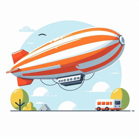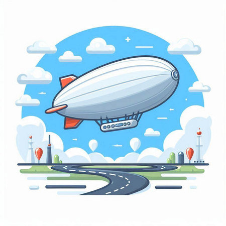Airship and air transport. Vector illustration in flat style on the theme of air travel.