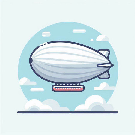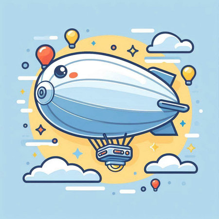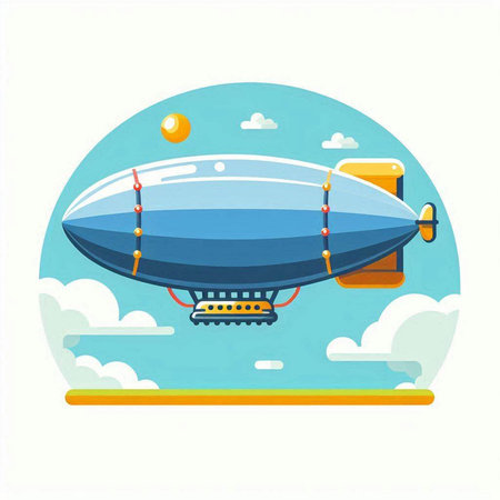 Vector illustration of Cartoon style airship in flat design. Objects isolated on blue background.